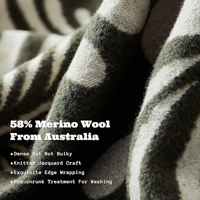 - NEW UPGRADE - ACUSHLA new series of merino wool blankets upgrade the wool content to 58% for better thermal insulation and breathability, preserving original pattern design and the dense fluff with a soft and skin-friendly touch