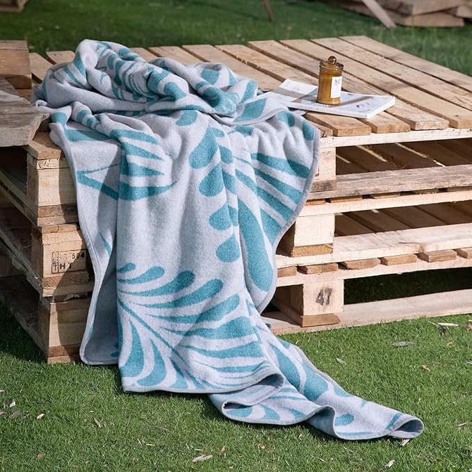 ACUSHLA Merino Wool Blanket - Soft Warm Thick Washable Large Throw Blanket for Camping Bed Couch Outdoor Travel All Weather, Rainforest Blue 79X63