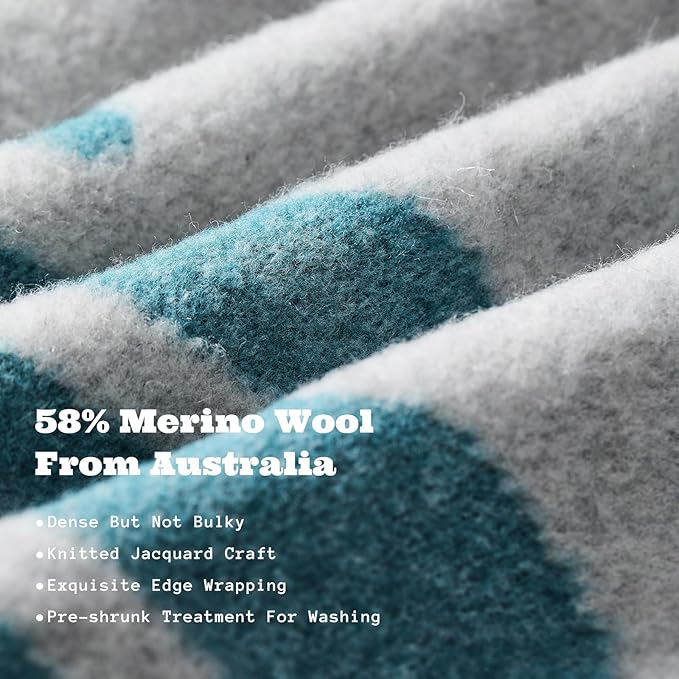 - NEW UPGRADE - ACUSHLA new series of merino wool blankets upgrade the wool content to 58% for better thermal insulation and breathability, preserving original pattern design and the dense fluff with a soft and skin-friendly touch