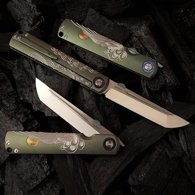 Handmade CPM-S35VN Powder Steel Japanese Pocket Knife, TC4 Titanium Alloy Handle, Camping and Hiking, Can be Gifted to Husband and Wife