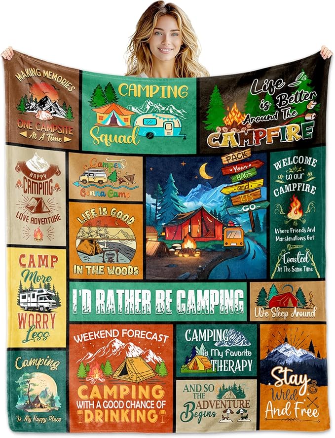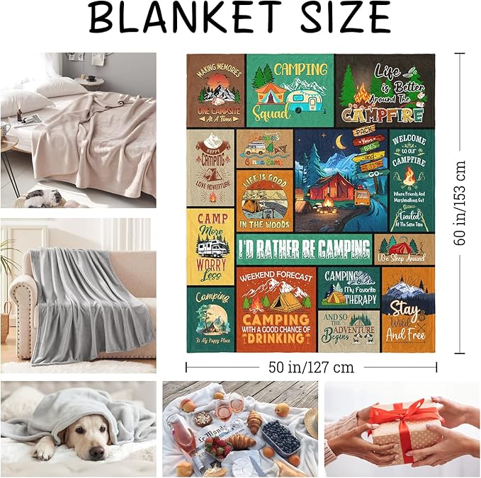 Camping Lovers Gifts, Camping Gifts for Women/Men, Camping Throw Blanket 60"X50", Blanket for Camping, Camping Gifts, Camper Gifts, Gifts for Campers, Rv Gifts for Women Birthday Christmas