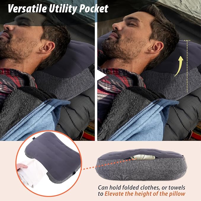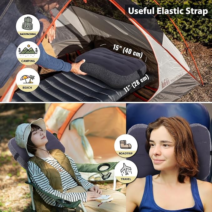 - Durable Material & Construction: Rest easy with the extra secure valve and thickened TPU bladder, preventing air leaks and ensuring the travel pillow's longevity. Quality and durability seamlessly intertwine for a dependable camping experience.