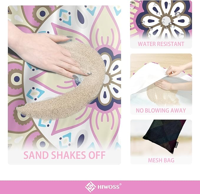 - 🌊【SANDPROOF, WATER RESISTANT & SOFT】The beach blanket is made of sand resistant, waterproof fabrics. Just shake the blanket and it easily gets rid of all the sand once.Sand does not filter through. The Silky Soft Fabric let you lie comfortably while enjoying a pleasant day on the beach.
