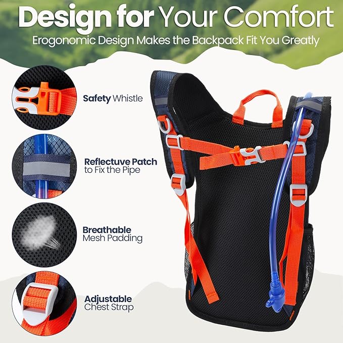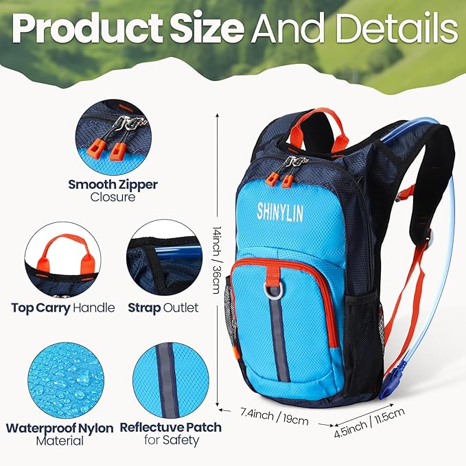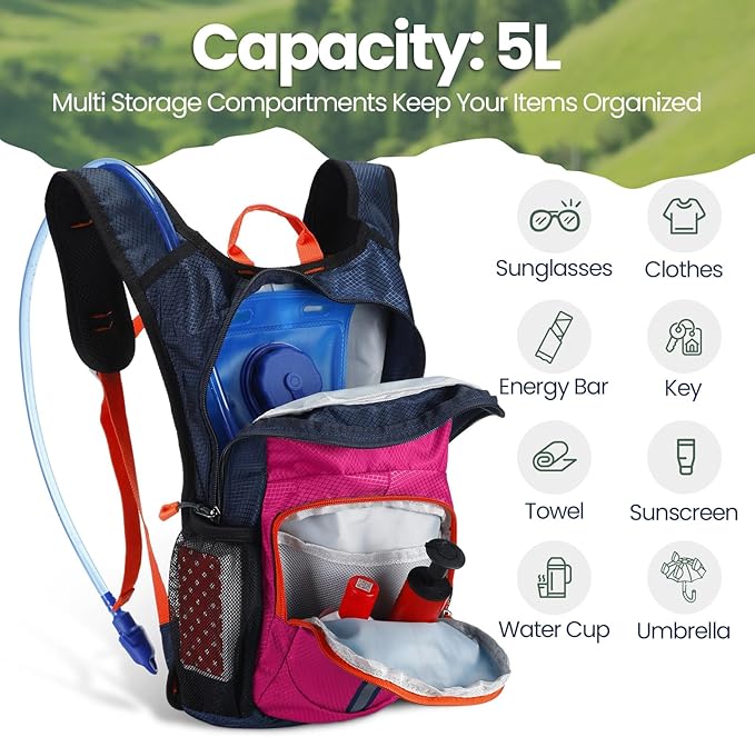 - Multi scenario Use: this compact kid's hiking hydration backpack is lightweight and stable, suitable for children to use during outdoor activities such as cycling, camping, running, jogging, climbing, walking and hiking