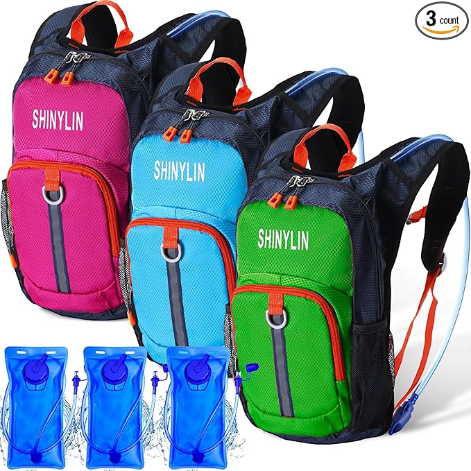 - Product Includes: you will receive 3 pieces of kids hydration backpack in colors and 3 pcs 50.7 oz/ 1.5 L water bladder; Small children's cycling hydration backpack measures approximately 14 inches x 7.4 inches x 4.5 inches, small, cute and lightweight; You can give hydration backpack as gifts to children who love outdoor activities