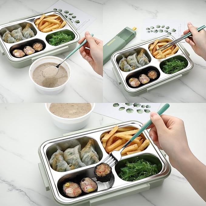 DEVICO Travel Utensils with Case, Stainless Steel Reusable Camping Silverware Set for Lunch Box, Portable Cutlery Kit Includes Fork, Spoon, Chopsticks (Green)