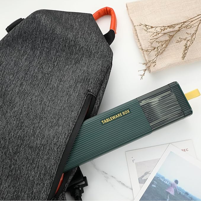 - Portable utensil case: Specially designed silverware case with size-7.6 * 1.9 * 0.9 in, smaller than many others. You can put the portable utensils set with case in your lunch bag or backpack. Service for your lunch in the office or on camping, travel, picnic, school, dorm, outdoor, etc