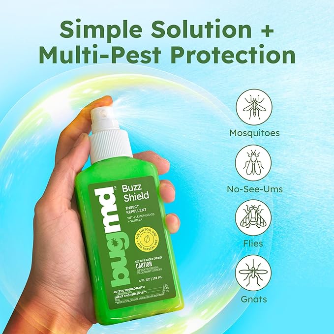 BugMD Buzz Shield (1-Pack) - Mosquito Repellent Outdoor Spray for Body, Insect Repellent, Tick Repellent for People, DEET Free Bug Spray, Mosquito Repellent Spray, Bug Spray for Kids