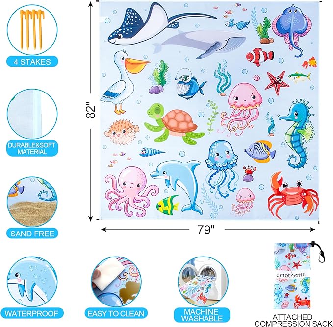 - 【Stylish Beach Blanket & Easy Maintenance and Cleaning】This oversized beach blanket is stylish and eye-catching, with a unique print pattern - sea world, turtles and whales to make you stand out on the beach! You can easily find your family and friends on the beach without worrying about getting lost. For deeper cleaning, it's machine washable, ensuring that it stays fresh and ready for your next outdoor adventure.