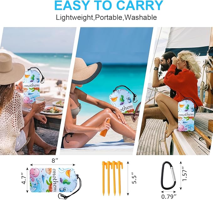 - 【What You Get】The package includes 1 extra large beach blanket,1 carabiner,4 ground piles to prevent the blanket from being blown away by the wind. Let your family and children enjoy the beach, sea and sun together. Say Goodbye to Messy Beach Days.