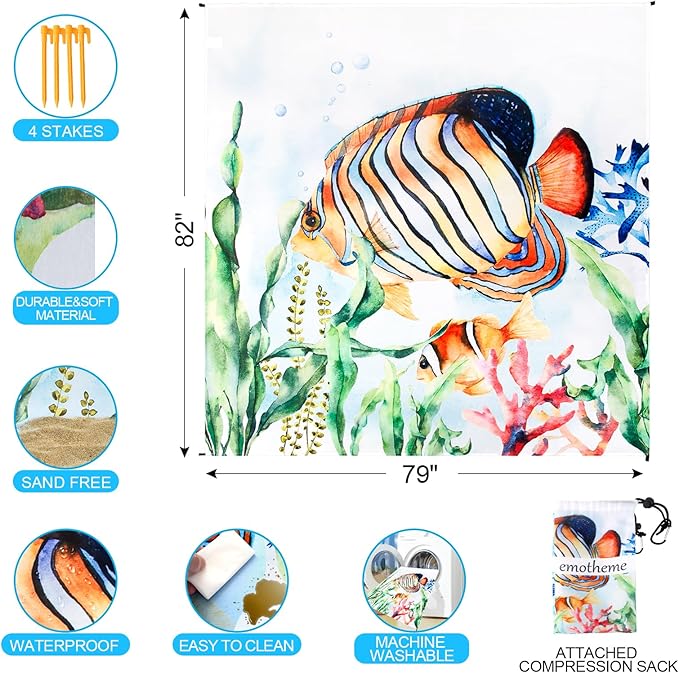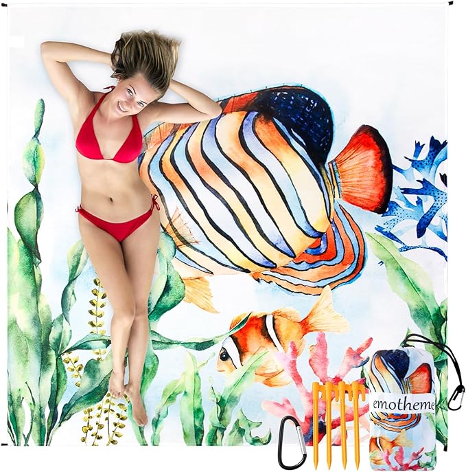 - 【Stylish Beach Blanket & Easy Maintenance and Cleaning】This oversized beach blanket is stylish and eye-catching, with a unique print pattern - sea world, turtles and whales to make you stand out on the beach! You can easily find your family and friends on the beach without worrying about getting lost. For deeper cleaning, it's machine washable, ensuring that it stays fresh and ready for your next outdoor adventure.