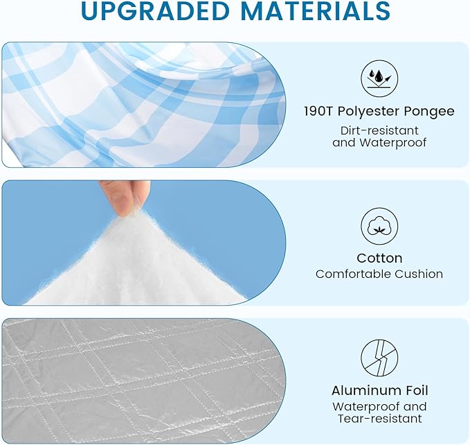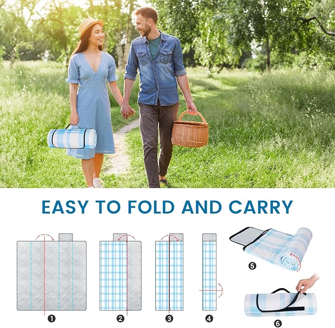 - 【Durable Three-Layer Design】 Designed with a 3-layer structure,our picnic blankets consist of a water-resistant 190T polyester fabric outer layer, a soft cotton-filled middle layer, and a thickened aluminum film bottom layer for excellent waterproofing. Enjoy improved comfort and durability during your outdoor picnics with our upgraded fabric technology !