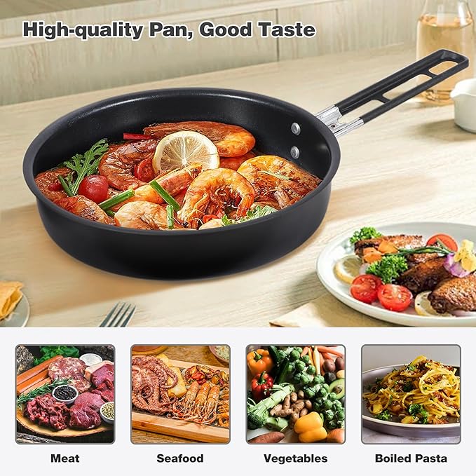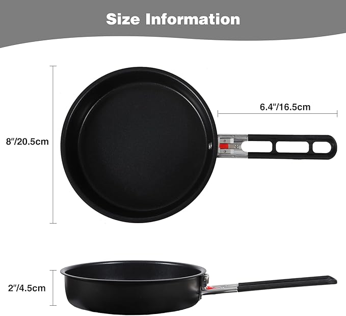 - Non-stick Skillet: Made of aluminum with high quality non-stick coating, redcamp frying pan can meet your cooking needs when going outdoor. A pan in hand, a variety of delicious food you’ll get. Cooking eggs, bacons, steaks and etc is just a breeze. Be the Camping Chef!