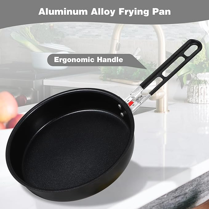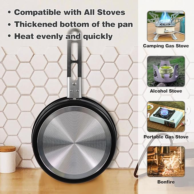- Lighweight and Mini Size: The net weight of the pan is 0.4lbs/200g. The handle can be folded just by an easy touch. A mesh bag is included for easy backpacking. Ultra lightweight to take it out. No need to worry about problem of overloading when going out.