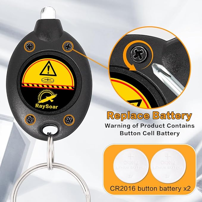 - Replaceable CR2016 Batteries: The mini keychain flashlight is installed TWO CR2016 batteries, usually it gives you up to 12 hours of continuous use. You can replace the new batteries easily by user manual.