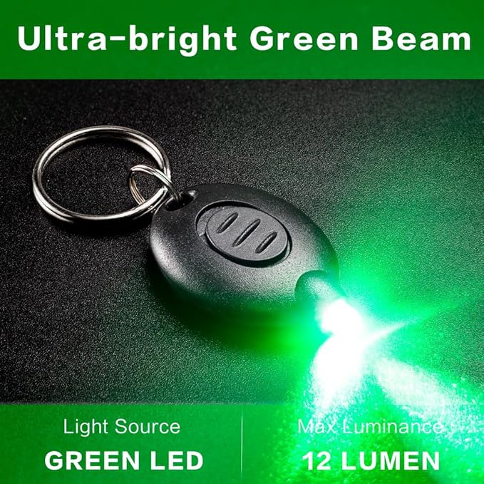 - Ultra Bright Green LED Keychain Flashlight: The green keychain LED flashlight offers 12 lumens green LED light. green light is the helpful tools for night observation, you can observe the animals behavior without disturbing them.