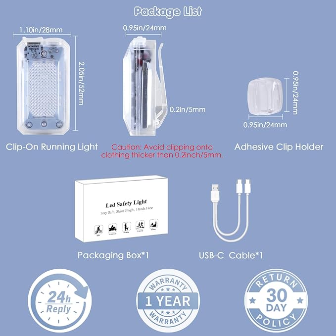 - Two Installation Methods For Versatility: The clip on running light is deep and has teeth to grip just the right amount and stay in place even while running, easy on vests, belts, collars, pockets, headbands, hats, dog harnesses, etc.The adhesive base holder makes it versatile as attached to helmets, drones, car footwells, cabinets, bicycles, motorcycles, and other smooth surfaces.