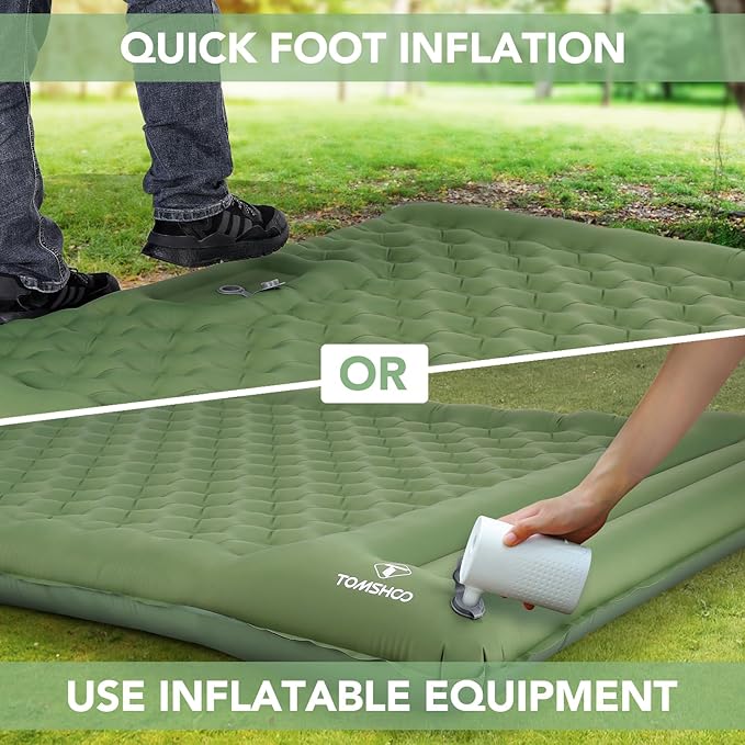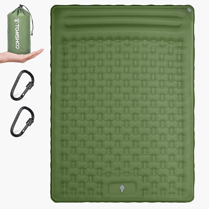TOMSHOO Double Sleeping Pad, Inflatable Sleeping Mat Built-in Pump Camping Mat Upgraded Support Camping Mattress with Pillow, 2 Carabiner, Carry Bag, Repair Kit-77''L*53''W*5''H