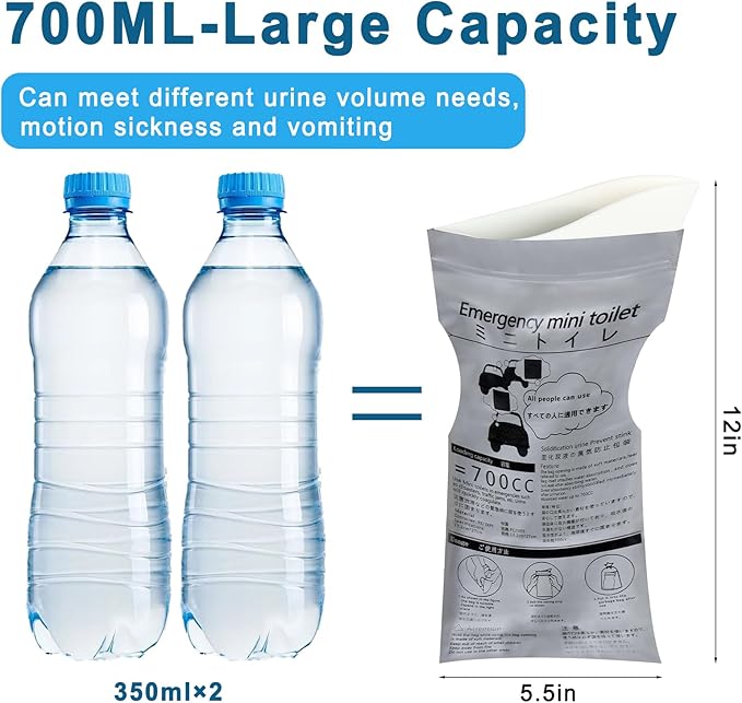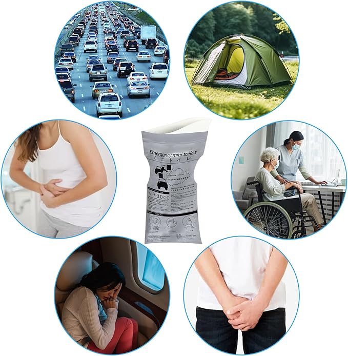 - Multi-occasion use: Disposable pee bag is suitable for camping, long-distance travel, hiking, mountaineering, outdoor cycling, traffic jams and other emergencies; moreover, sickness, airsickness or mobility problems can be used as an emergency vomit bag