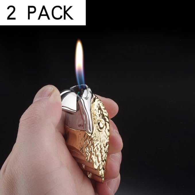 2PACK Black Gold Eagle Head Windproof Butane Jet Torch Lighter,Funny Cool Lighters,Adjustable Jet Flame Torch,Refillable,Grill BBQ Candle Camping(Without Gas)