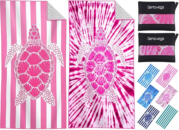 2 Packs Microfiber Oversized Lightweight Thin Beach Towel Sandproof Compact Quick Dry Clearance Towels Extra Large Sand Free Travel Beach Essentials Accessories Women Adult Gift Pink Turtle Vortex