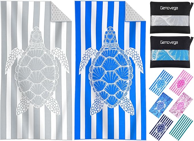 2 Packs Microfiber Oversized Lightweight Thin Beach Towel Sandproof Compact Quick Dry Clearance Towels Extra Large Sand Free Pool Travel Beach Essentials Accessories Women Adult Gift Blue Grey Turtle
