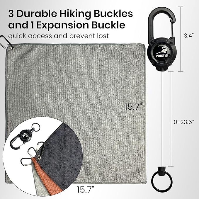 - 🎣【Customize your style】: Each towel comes with a metal buckle for hanging on your belt or hook, and the included zinger retractor & clip allows you to maximize hands-free use. The zinger extends up to 24" for easy operation without having to remove the towel from your belt. The lightweight material and portable accessories make it easy for you to carry this towel. You almost can't feel its presence, but can use it anytime and anywhere.