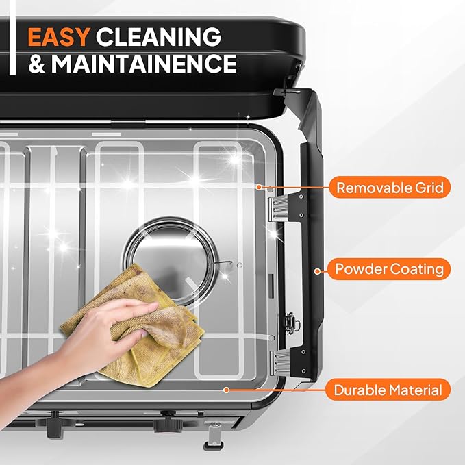 - 【Easy to Operate】The product includes a propane hose and regulator kit, ready for grilling, baking, steaming, frying, stewing, and barbecuing right out of the box! The lid of the gas stove can be opened and used as a windshield, ensuring stable firepower when cooking outdoors. All you have to do is bring your own propane tank, and then you can start cooking immediately