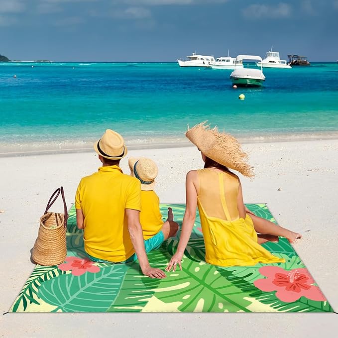 - đăBeach Blanket Sandproof and Waterproofă The beach mat is made of breathable and durable polyester fabric. When there is sand and debris, you only need to shake it slightly to fall easily.There are pockets attached to the corners of the sand mats, which can be fixed by filling with sand. If you are worried that the wind is too strong to be fixed, you can add anchor piles to make your beach mats more stable.