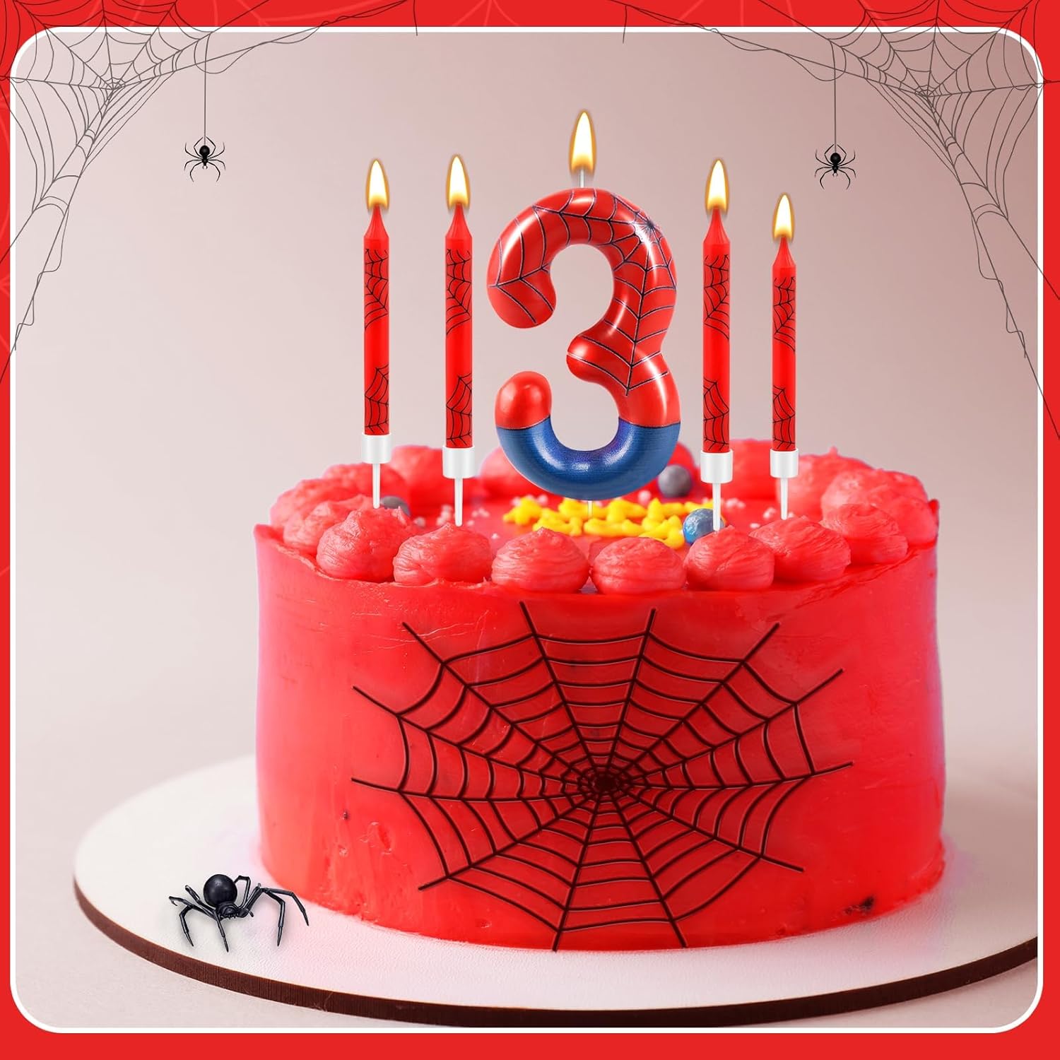 13 Pcs Spider Themed Birthday Candle Set Red Spider Theme Number 3 Candle Cake Topper for Boys Girls Birthday Decoration Spider Party Decoration Supplies (Number 3)
