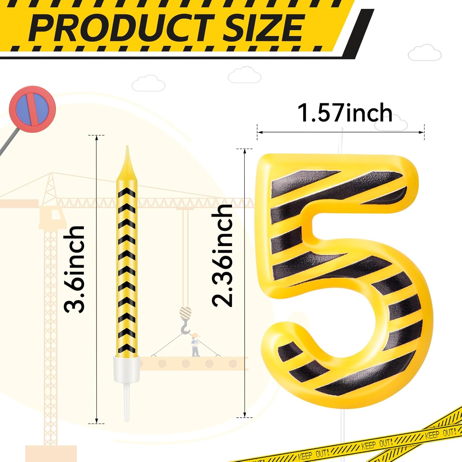 - The Package Includes: You will receive 12 yellow and black striped construction themed birthday candles and 1 number 5 candle, Sufficient quantity for birthday cake decoration or party celebration and daily use