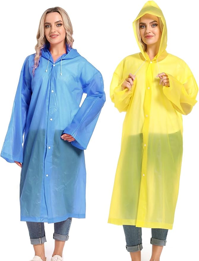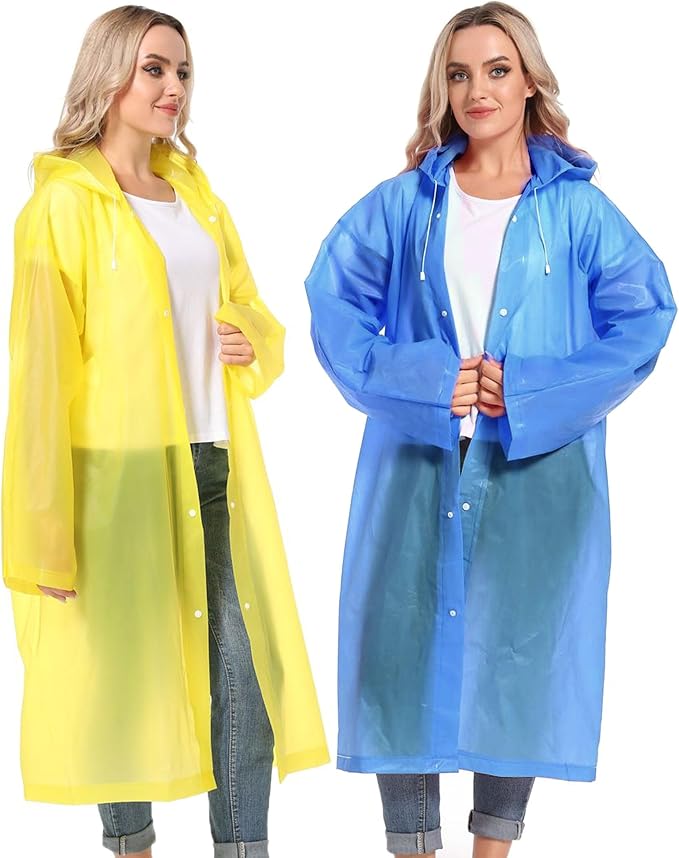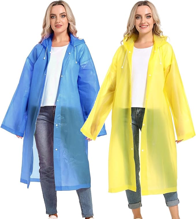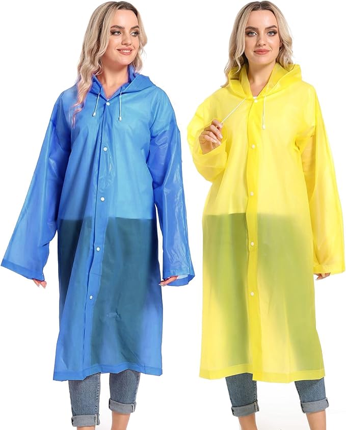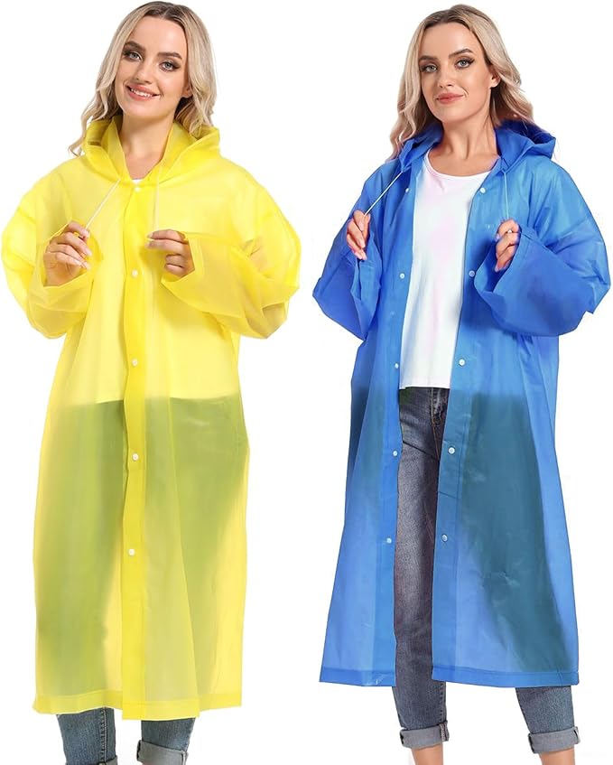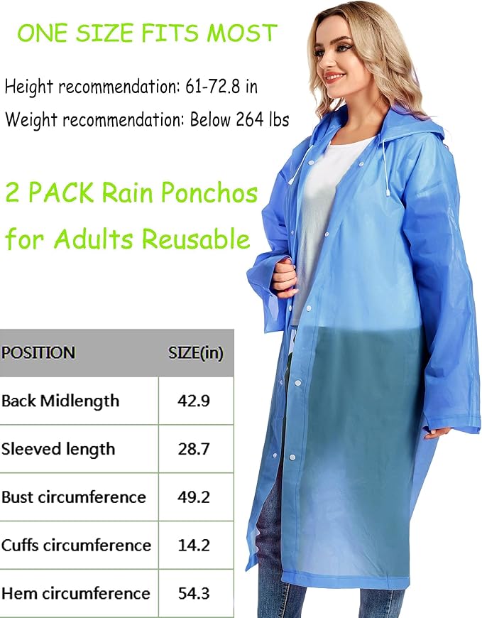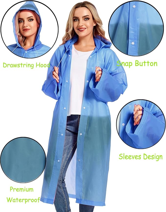- 【PERFECT FITS MOST】Our rain poncho with long sleeves, quality button and big hood drawstring design is perfect for men, women, youth and teens,one size fits most,full-length reusable rain coat with a drawstring hood and long sleeves ensure water does not get in, a rain gear won't stick you but keep you dry