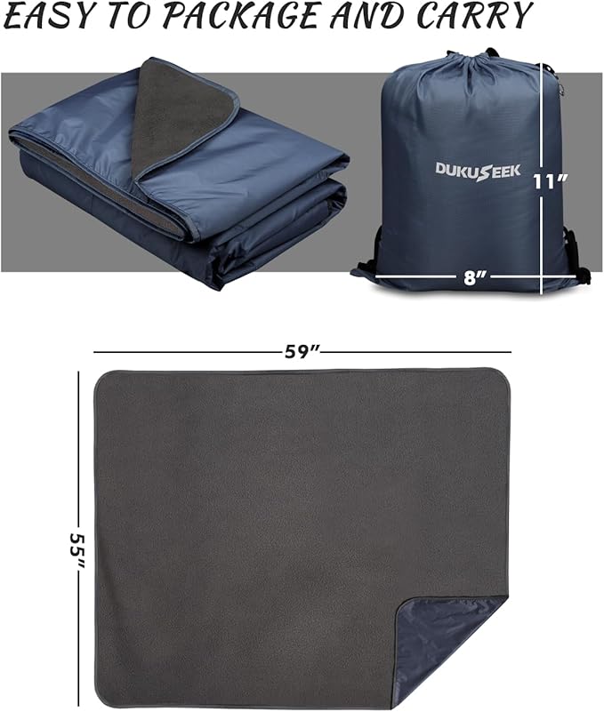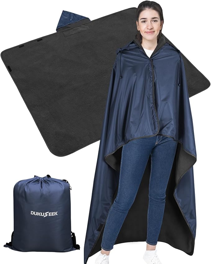 - ✅ MULTIFUNCTIONAL BLANKET - DUKUSEEK waterproof outdoor blanket features a wearable, detachable hood, allowing it to function as a poncho for warmth or as a picnic blanket when the hood is folded. The cloak design frees your hands. Made of durable, pet-friendly nylon that prevents hair buildup. It also serves as an excellent emergency blanket for your car.