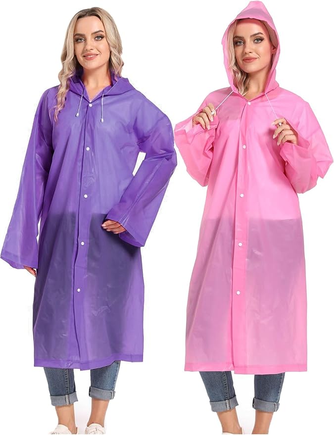 - 【PERFECT FITS MOST】Our rain poncho with long sleeves, quality button and big hood drawstring design is perfect for men, women, youth and teens,one size fits most,full-length reusable rain coat with a drawstring hood and long sleeves ensure water does not get in, a rain gear won't stick you but keep you dry