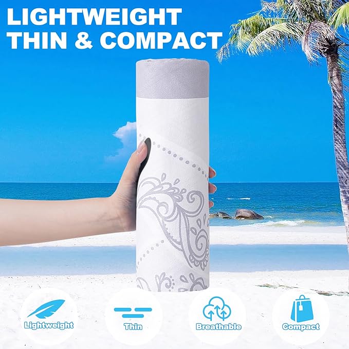 - 【Versatile use & Perfect gift】 : Our microfiber beach towels are incredibly versatile, not only are they perfect for the beach,pool, but they can also be used as bath towels, picnic blankets, yoga mats. Our towels available in a range of colors, they are a stylish and practical gift.From beach lovers to yoga enthusiasts, our beach towels are perfect for everyone.
