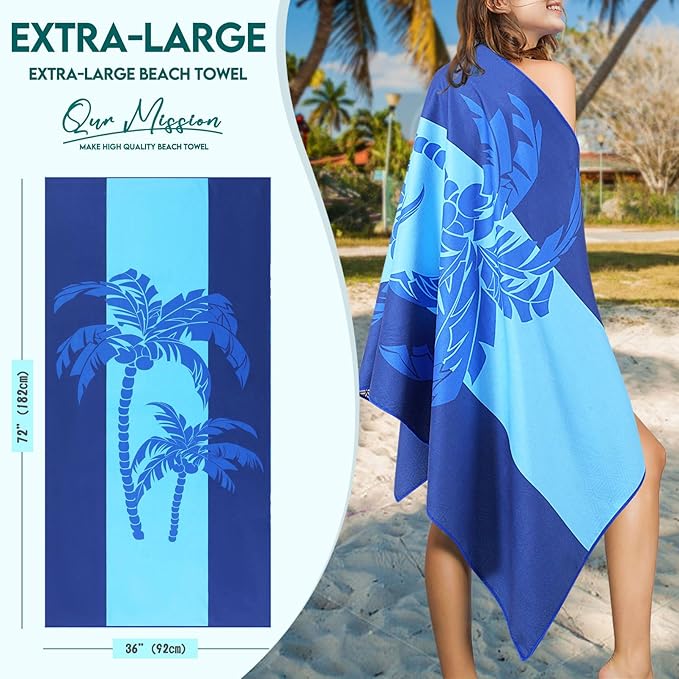 - 【Extra-large size 72"x36"】: Our microfiber beach towel is designed to be larger than a standard beach towel, providing ample space for you to relax and unwind. Measuring approximately 72 inches by 36 inches, it's perfect for those who want plenty of space to spread out and soak up the sun.