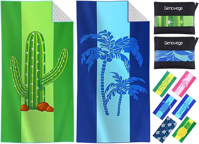 2 Packs Microfiber Oversized Lightweight Thin Beach Towel Compact Sandproof Quick Dry Clearance Towels Extra Large Sand Free Pool Essentials Accessories Women Men Adults Gifts Cactus Coconut Tree