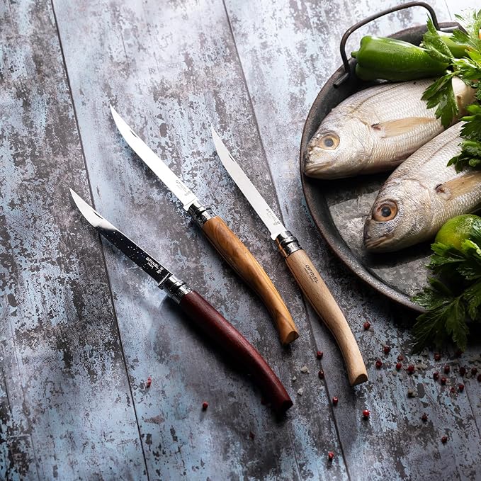Opinel Effile Slimline Series Folding Fillet Knife – Slim Blade Folding Knife, Virobloc Locking Collar, Sustainably Harvested Wood Handles, Updated Blade Profile (Beechwood/No.12)