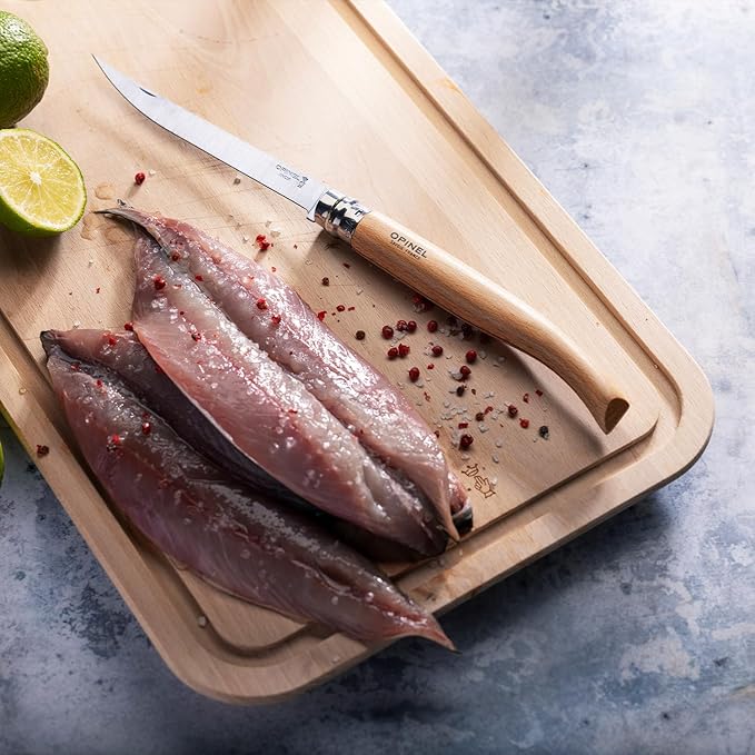 Opinel Effile Slimline Series Folding Fillet Knife – Slim Blade Folding Knife, Virobloc Locking Collar, Sustainably Harvested Wood Handles, Updated Blade Profile (Beechwood/No.15)