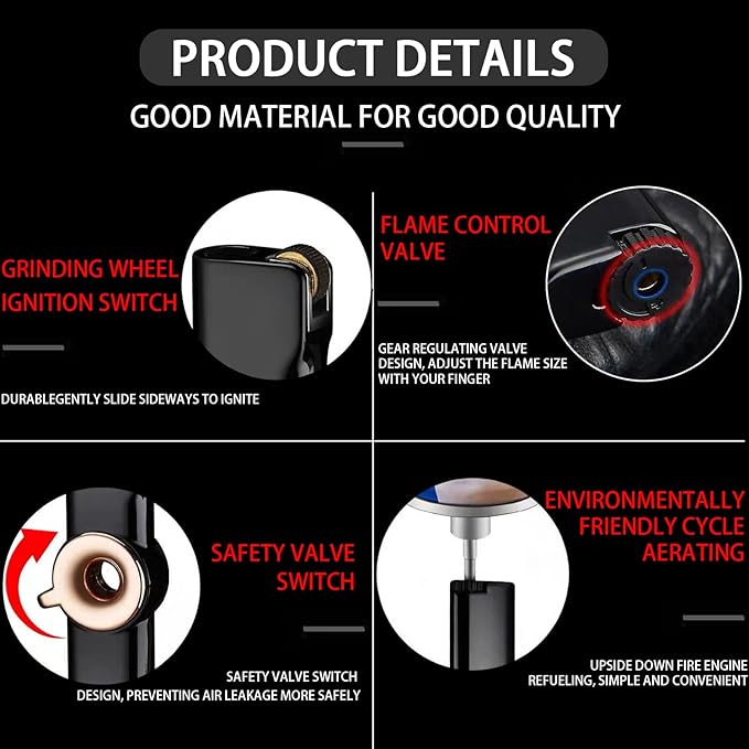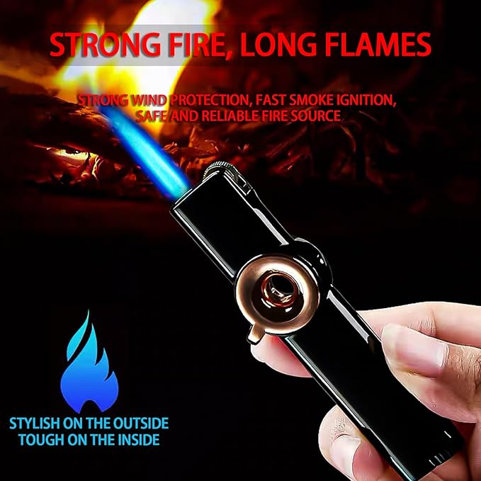 - EASY TO ADJUST BUTANE FLAME - this butane lighter is refillable and very easy to use. bottom flame size adjustment valve, you can adjust the flame intensity as needed.