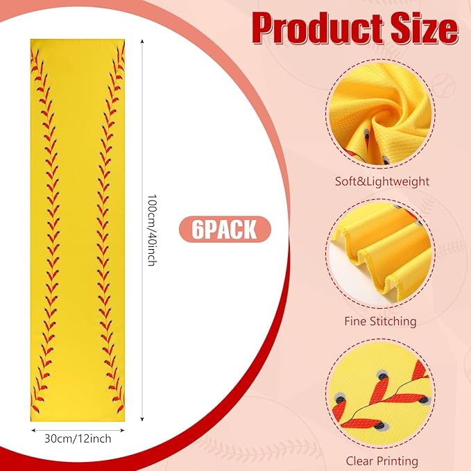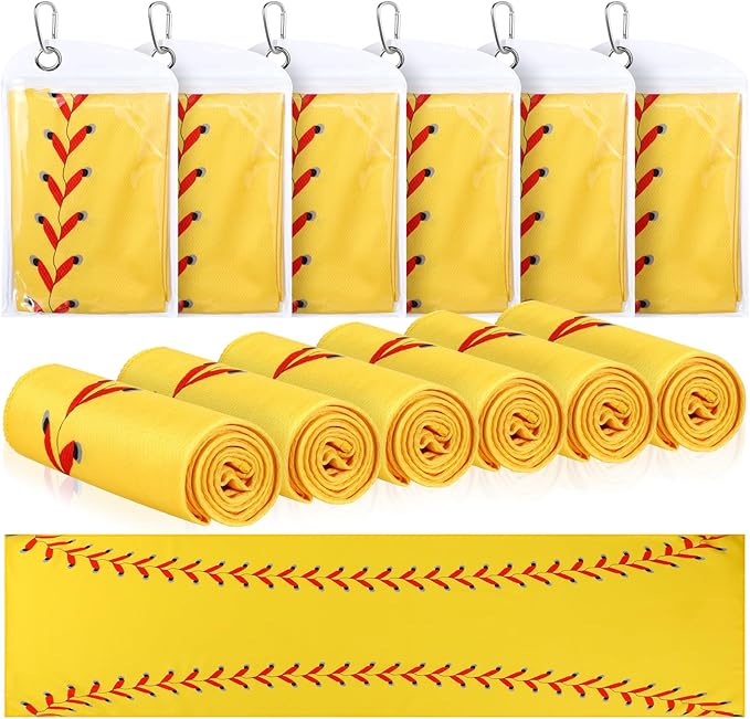 6 Pack Softball Cooling Towels for Boys, Yellow Sports Towels with Bags, 40"x12" Breathable Chilly Towel, Microfiber Towel for Softball Sport Team Gift