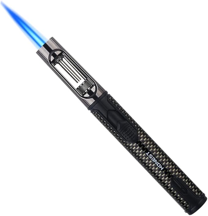 - Our Butane Lighter is Refillable, Refill the Torch Lighter with any Brand of Butane(Long Nozzle Stem). An Adjustable Flame Wheel on the End of the Lighter Lets you Easily Control the Flame Height, Providing Extra Flame Height when Needed.