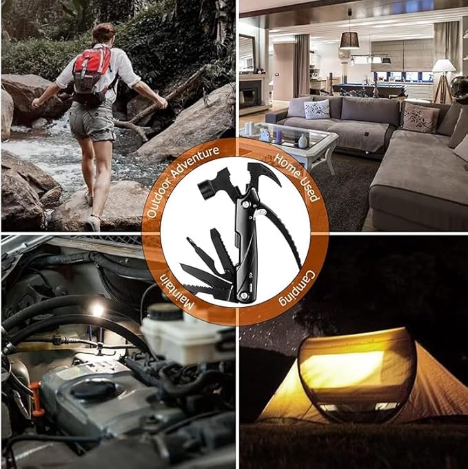 Camping Hammer Pocket Multitool, 12-in-1 Safety Locking Survival Gear Multi Tools Hammer Stocking Stuffers for Men Dad Gifts