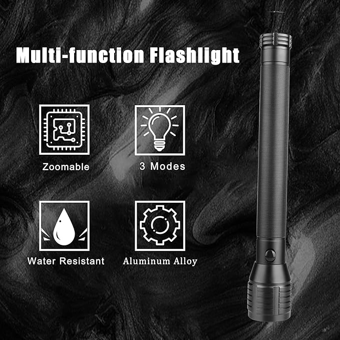 4 D-Cell Flashlight Battery Powered(Batteries not Included), 3 Modes & Zoomable, Ultra Bright Big Flashlights