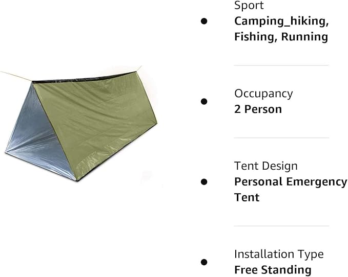 - 【Feature】This life tent heat reflective propertie in cold conditions insulated lining reflects 90% of body heat and helps insulate in extreme cold,It can be easily stored in the car,emergency first aid kit,and more.