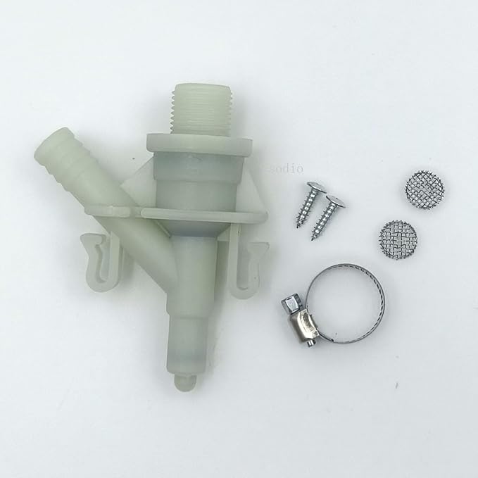 - 385311641 valve replacement part.Package Includes 1 x water valve, 1 x hose clamp, 2 x screws and 2 x stainless steel mesh filters
