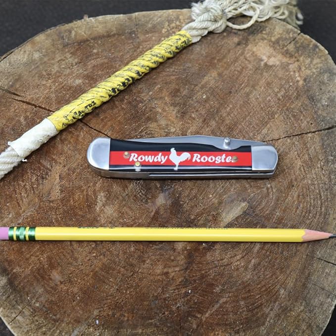 WHISKEY BENT HAT CO. Locking Trapper Folding Pocket Knife 4.125" Closed Length 440C Stainless Steel Blades (Rowdy Rooster - Serrated)