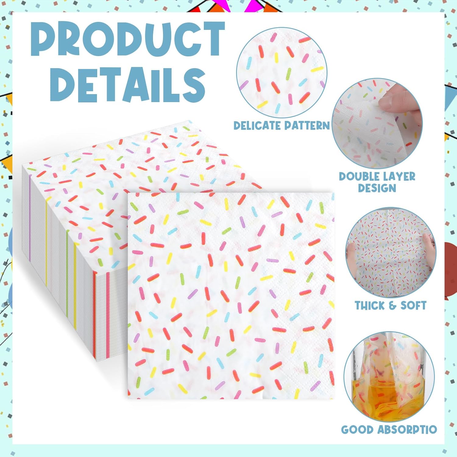 100 Pcs Sprinkles Napkins 2 Ply Disposable Paper Napkins for Baby Shower Birthday Party Theme Table Decor Supplies(White,Donut)