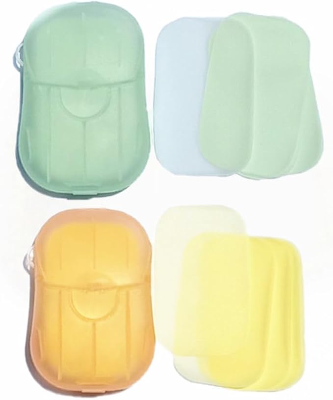 100Pcs Blue Portable Soap Sheets, Mini Portable Travel Soap Paper Sheets Disposable Water Soluble Hand Washing Bath Scented Paper Soap Camping Hiking and Shampoo for Outdoor(Green&Yellow)