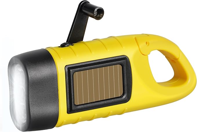 - Long Service Life and Wide Application: With PVC cover on the front, it’s shock-resistant and will protect the LED lens to some extent when dropped down. Perfect for power outages, daily use, hiking, camping, mountain climbing, and outdoor trips. It’s worth adding to your EDC kit, emergency kit, camping gear, or bug-out bag. What you get: Hand crank solar powered flashlight, User manual, and 3-year worry-free warranty service and friendly customer service.